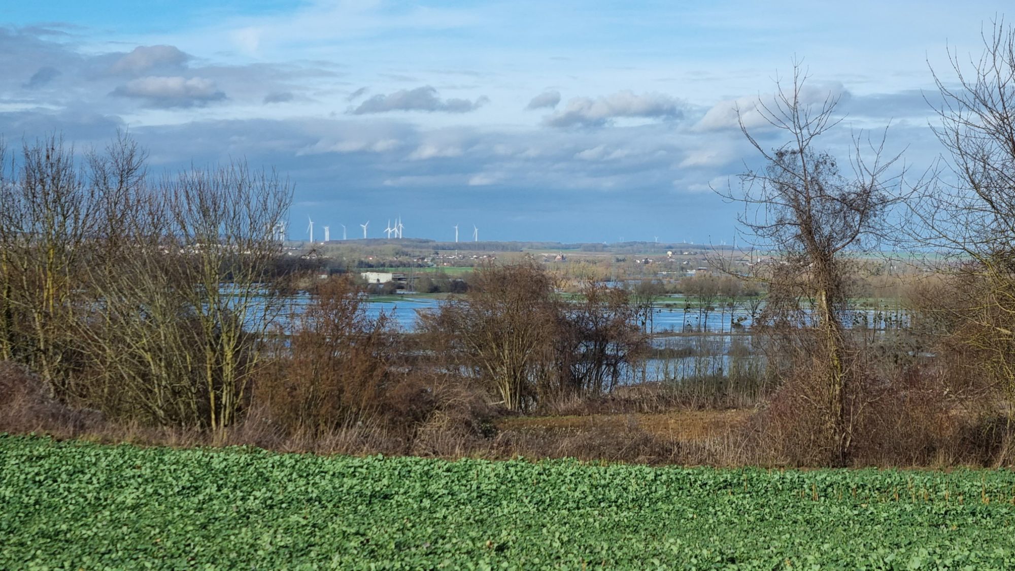 Paysages d’Amigny-Rouy et en bas à gauche vue sur le parking du stade (crédit photos Florent)